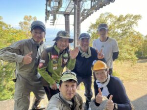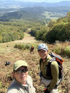 山頂付近の急斜面での作業はかなりキツイですが眺めは最高!