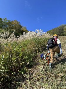 ホームゲレンデ「いいづなリゾートスキー場」のオープン準備のため、スキースクールの恒例行事、草刈りに行ってきました。