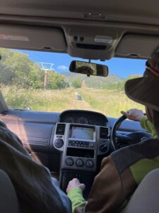 スキー場の4WD作業車に乗ってゲレンデを上がります。