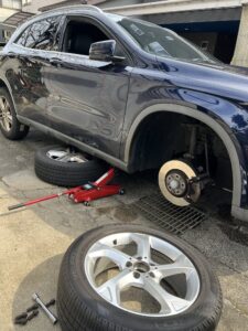 ガレージジャッキがあると楽にタイヤ交換ができますよ。