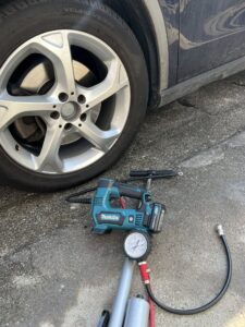 タイヤ交換が終わると空気圧の調整ですね。